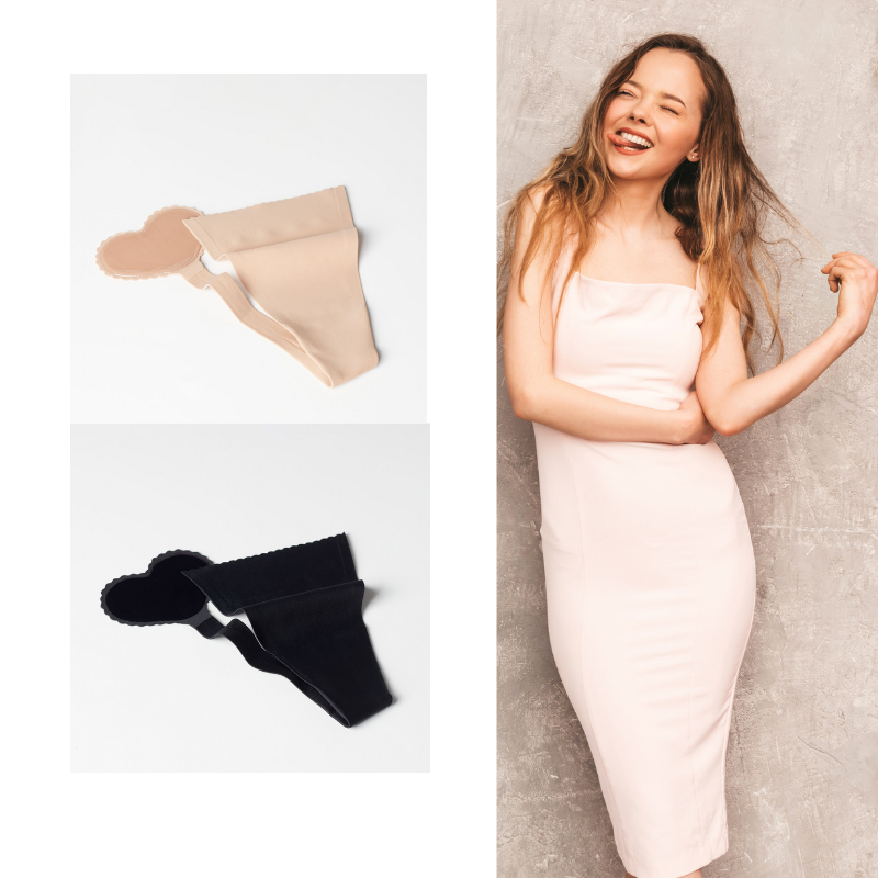 The INVISIBLE Thong by Kharess is the solution ! This invisible thong attaches to your skin on the front and back, which ensures no material is showing through your eveningwear or fine fabrics.